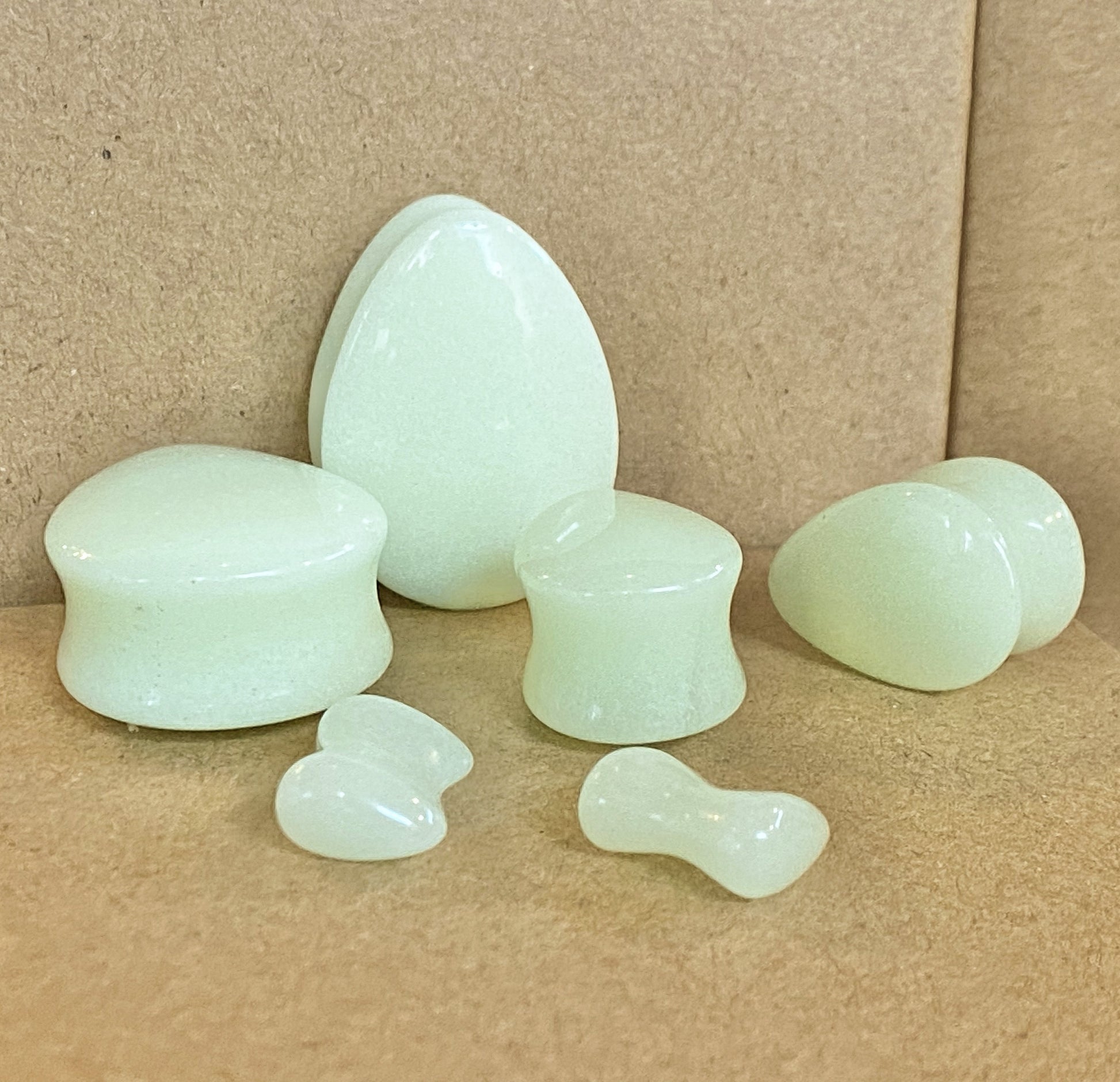 PAIR Glow in the Dark Stone Tear Drop Double Flare Plugs Teardrop Tunnels Gauges
