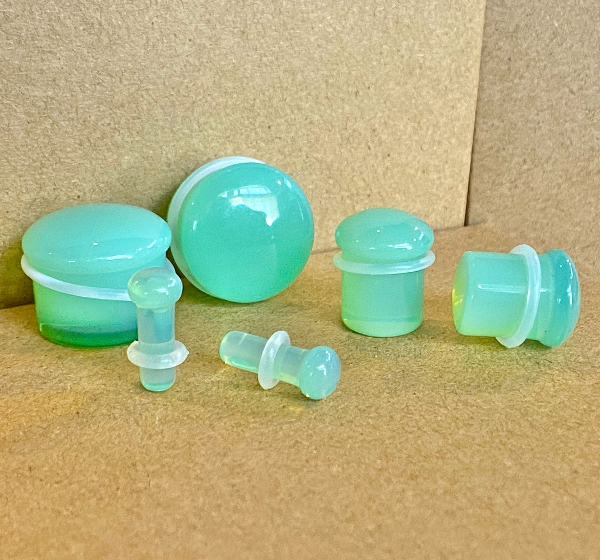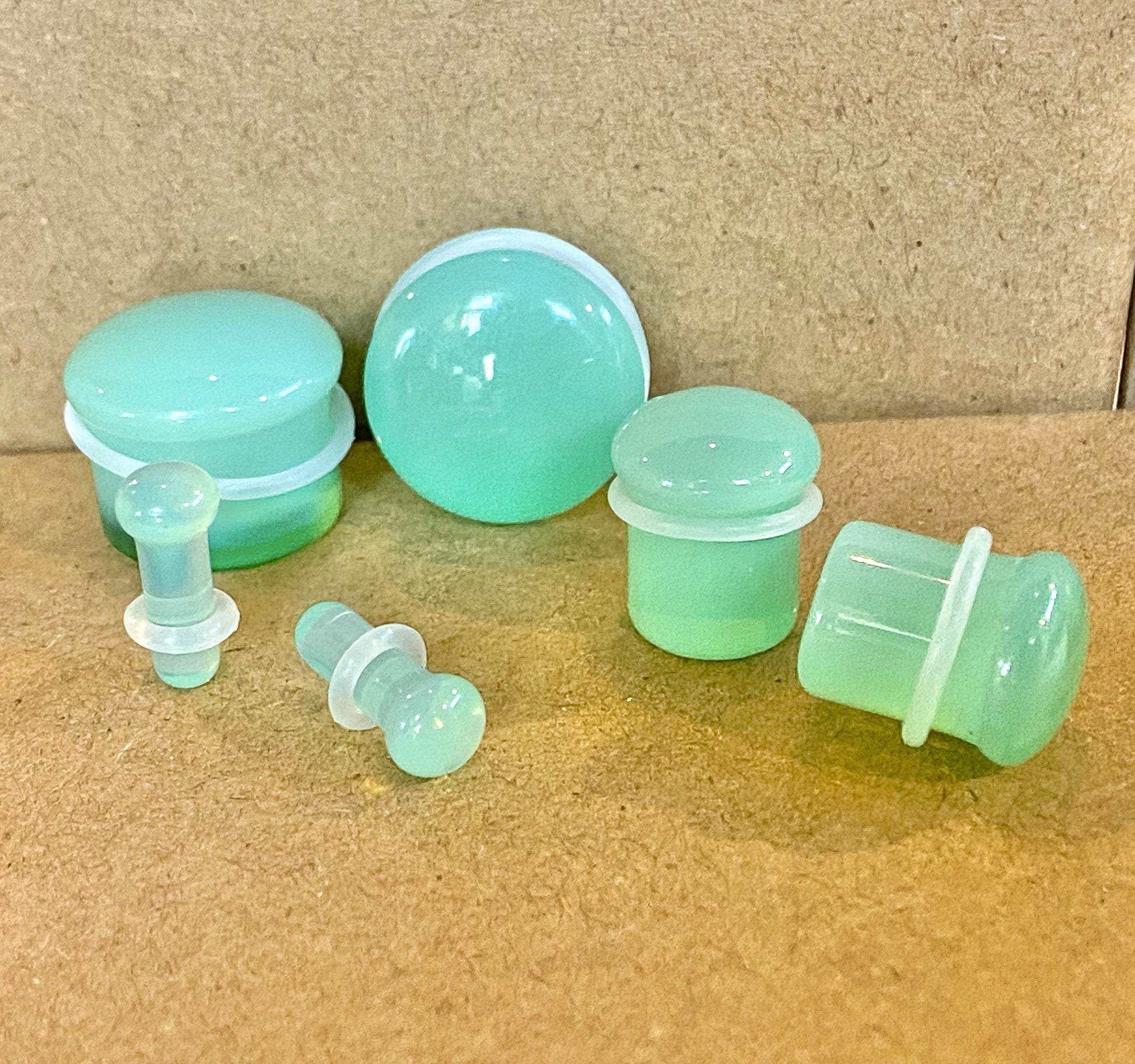 PAIR Green Opalite Single Flare Plugs Stone Glass Earlets Gauges Body Jewelry