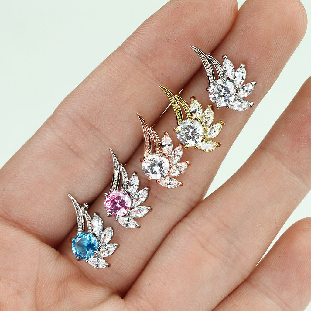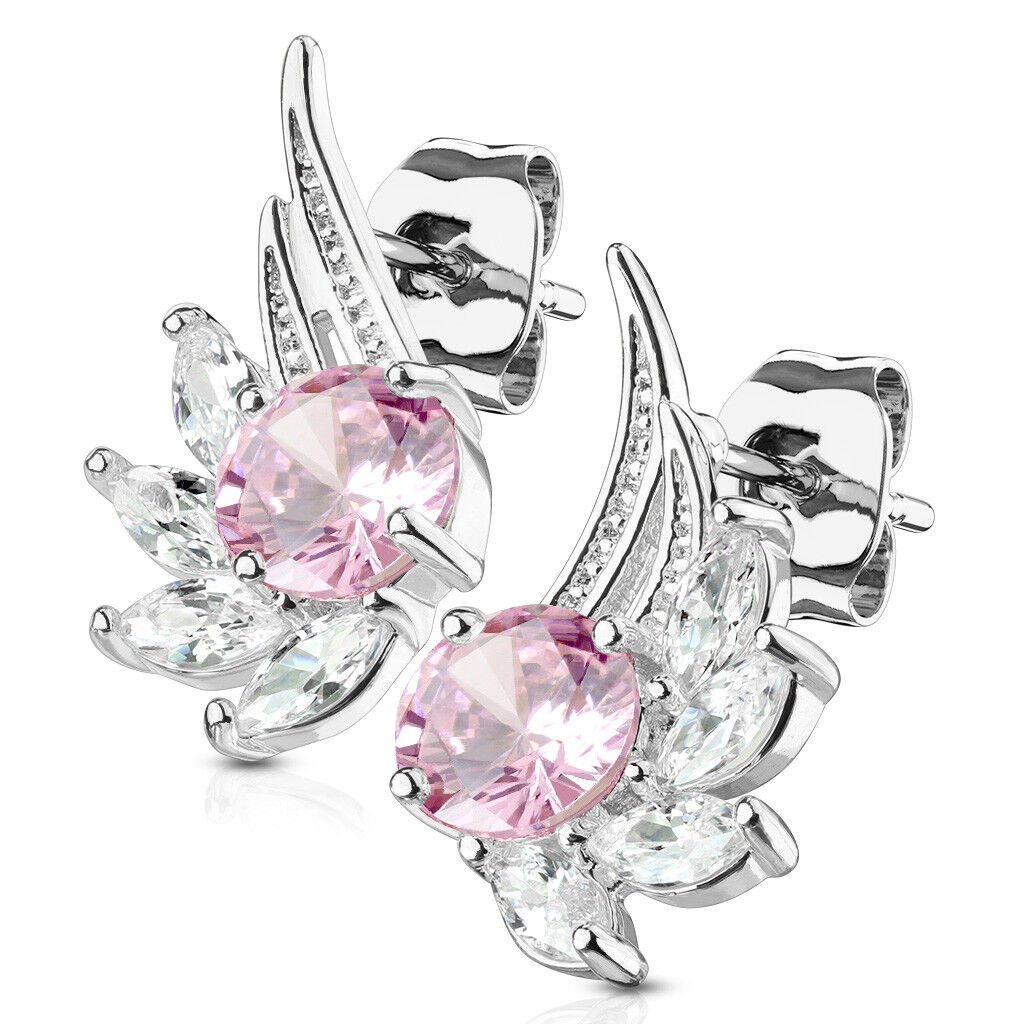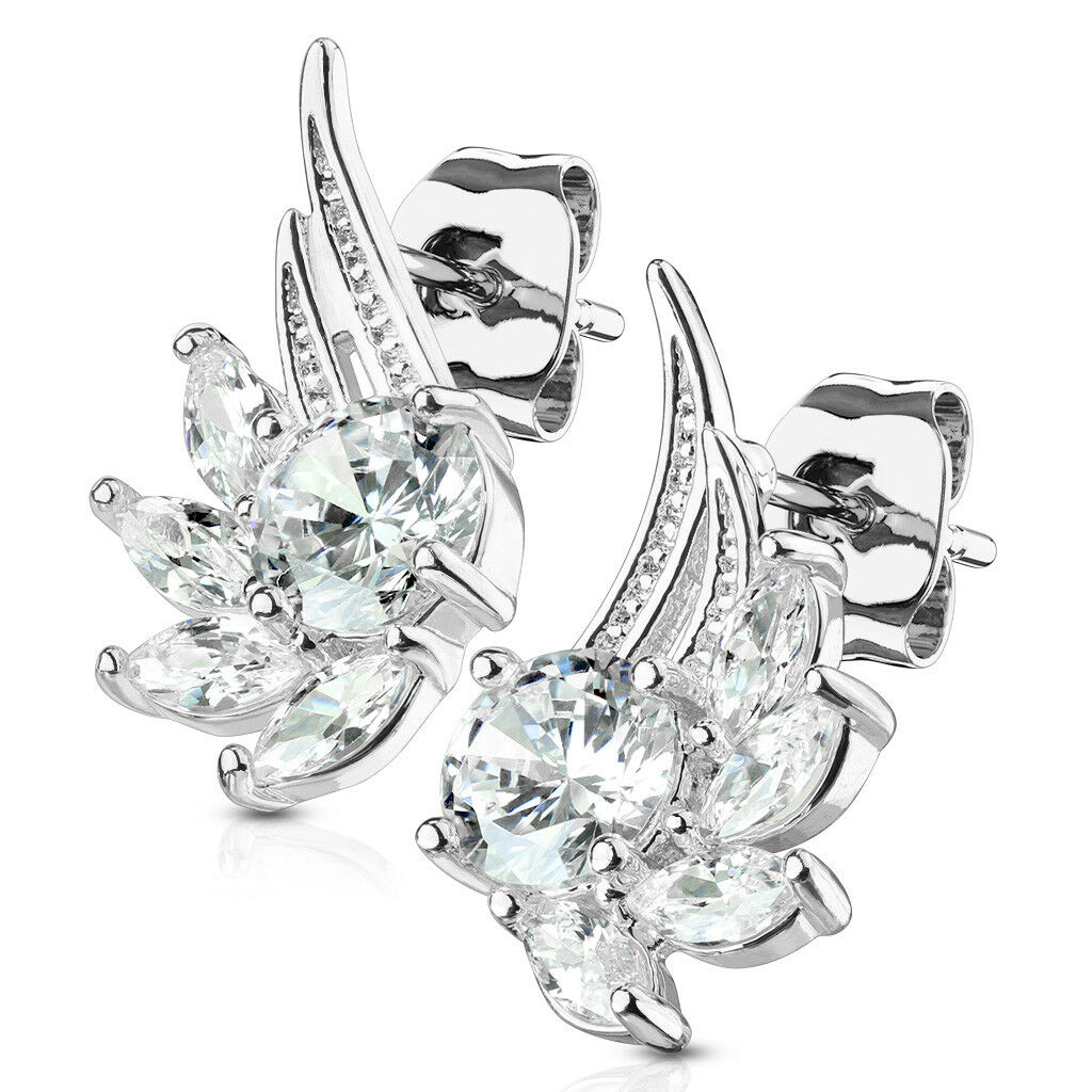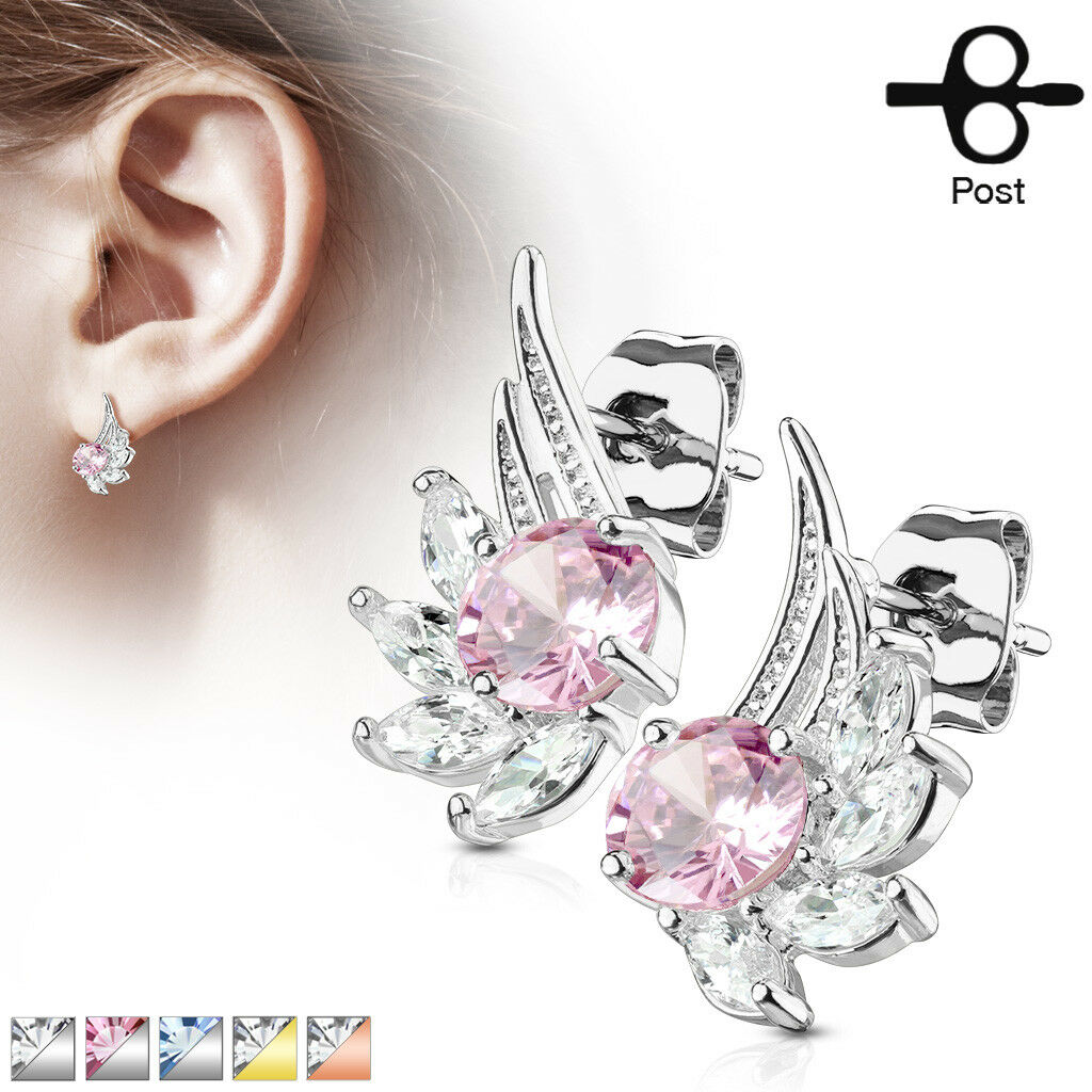 PAIR of CZ Angel Wings 316L Surgical Steel Post 20g Earrings Studs