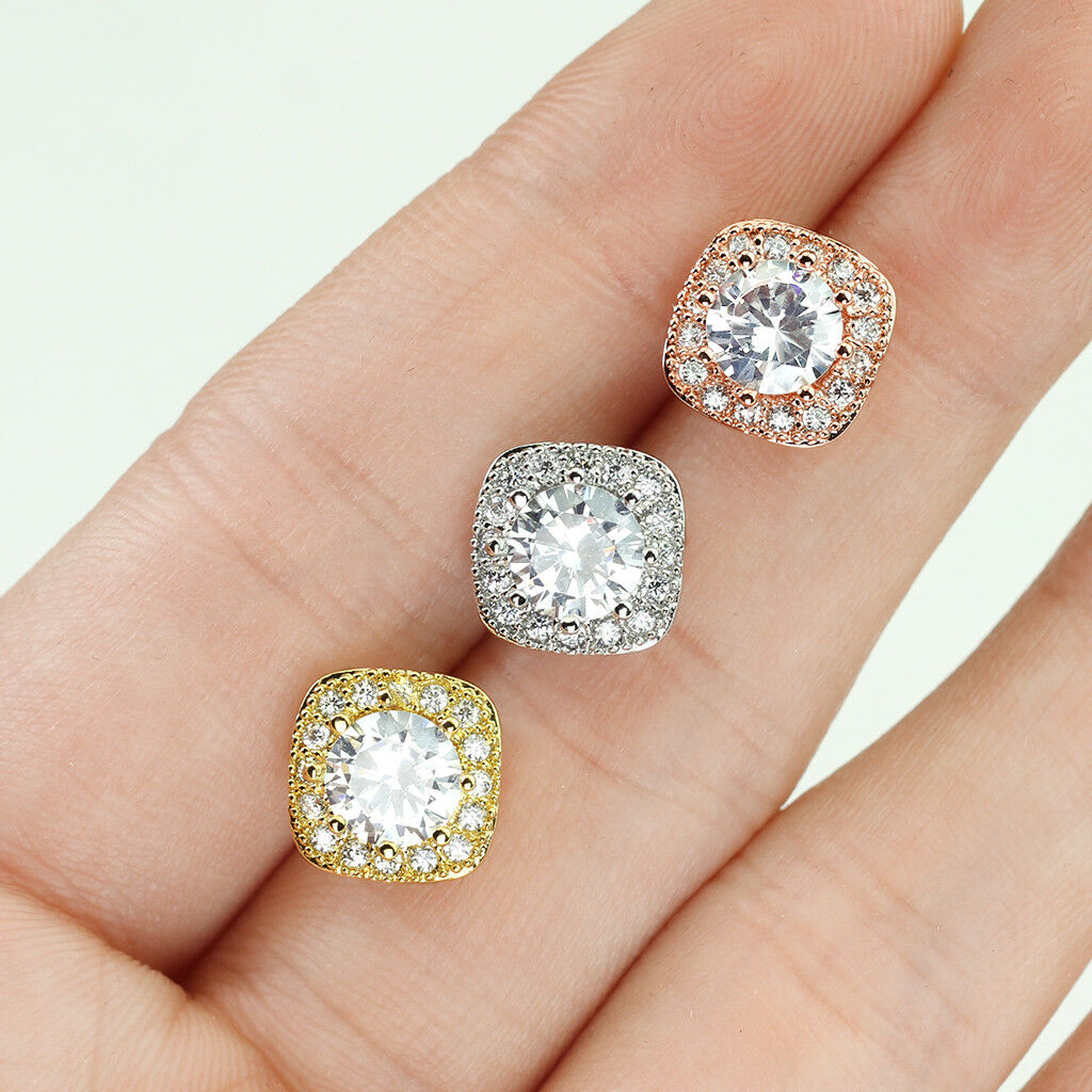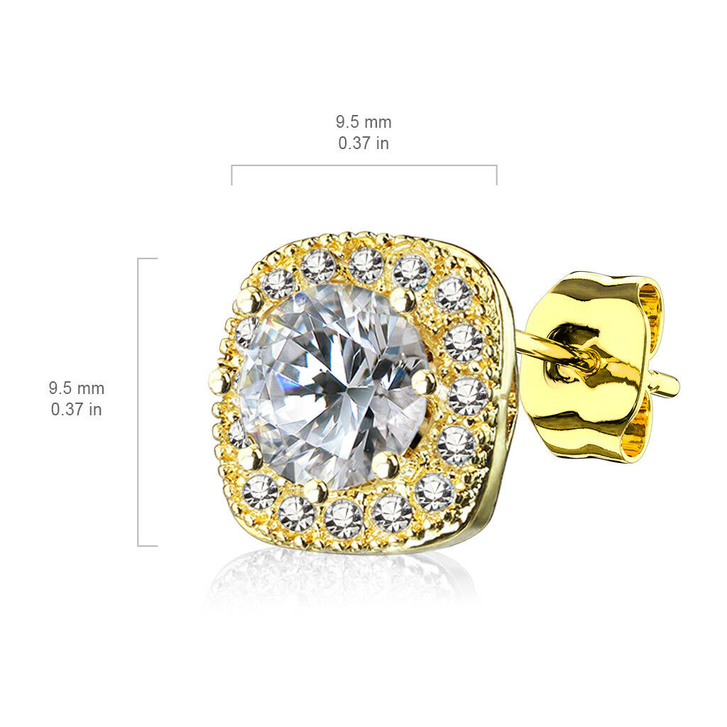 PAIR of Large Round CZ Centered Square 316L Surgical Steel 20g Earrings