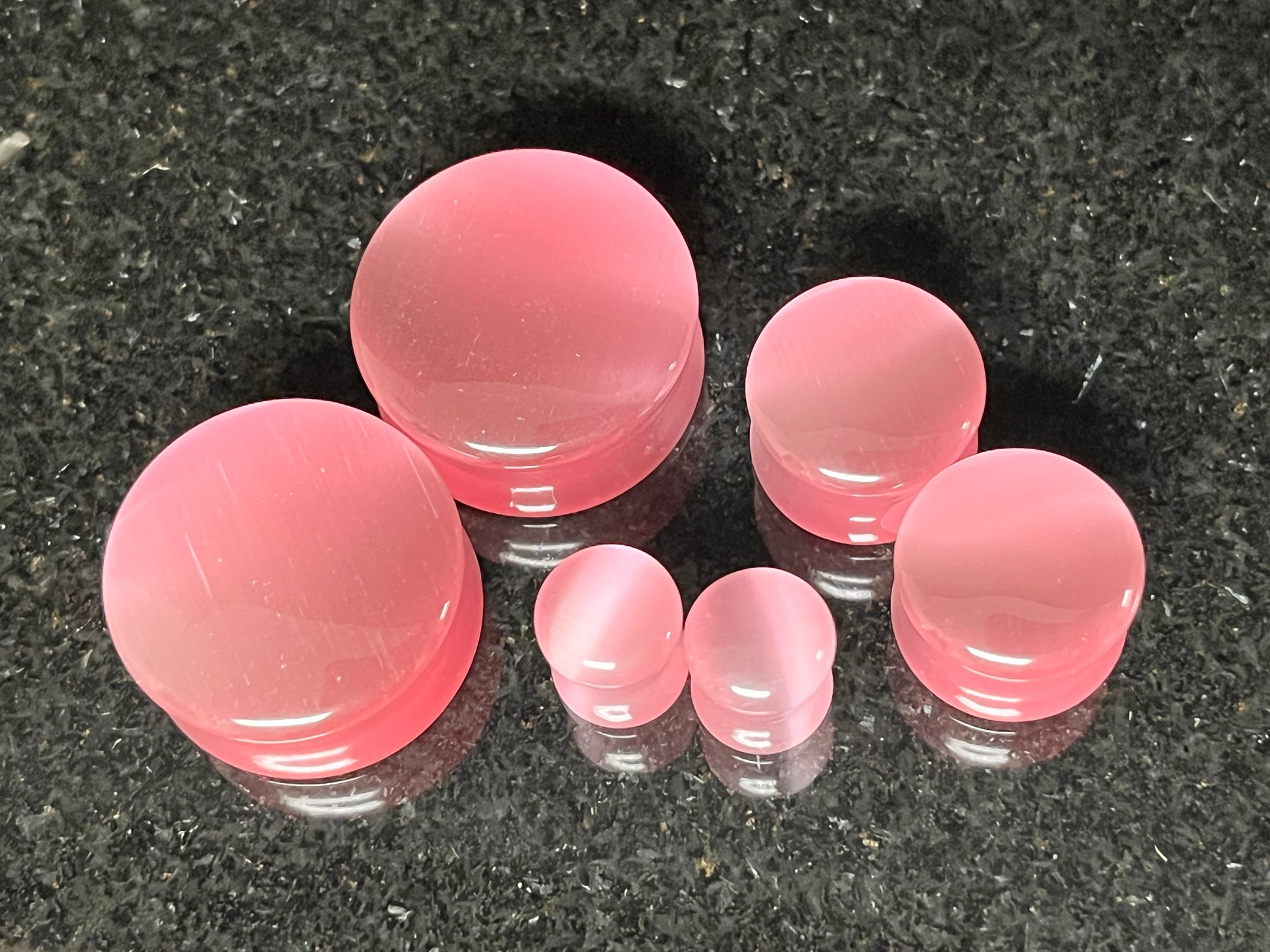 PAIR Pink Cat Eye Stone Double Flare Plugs Tunnels Earlets Gauges Body Jewelry