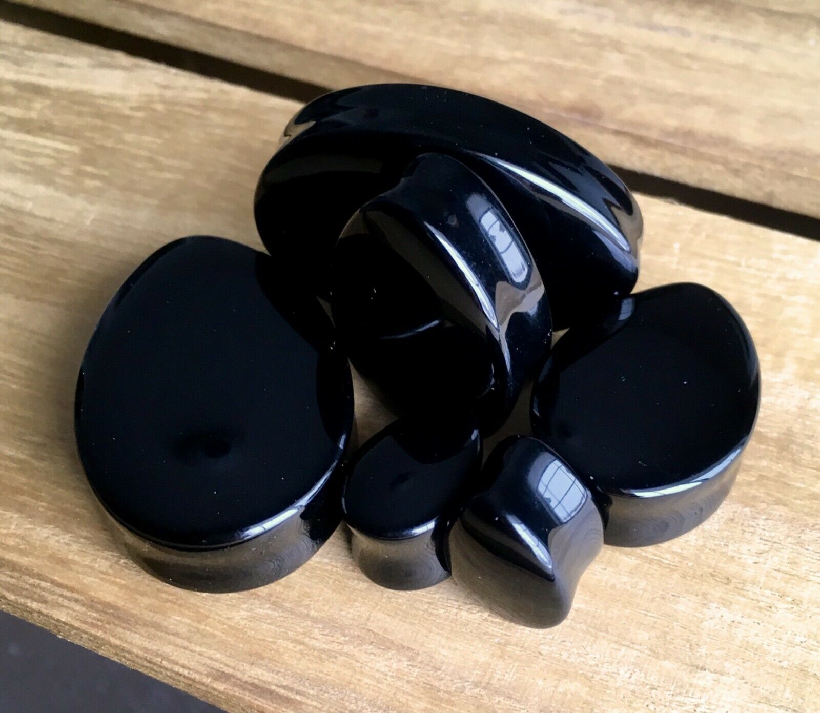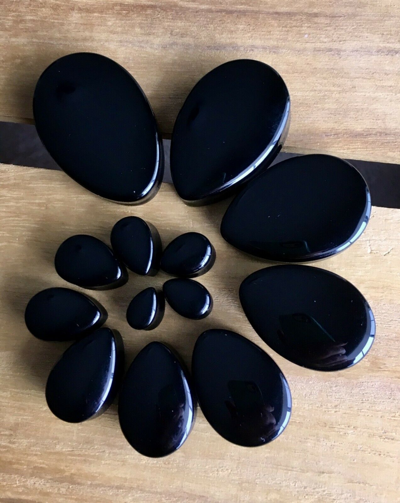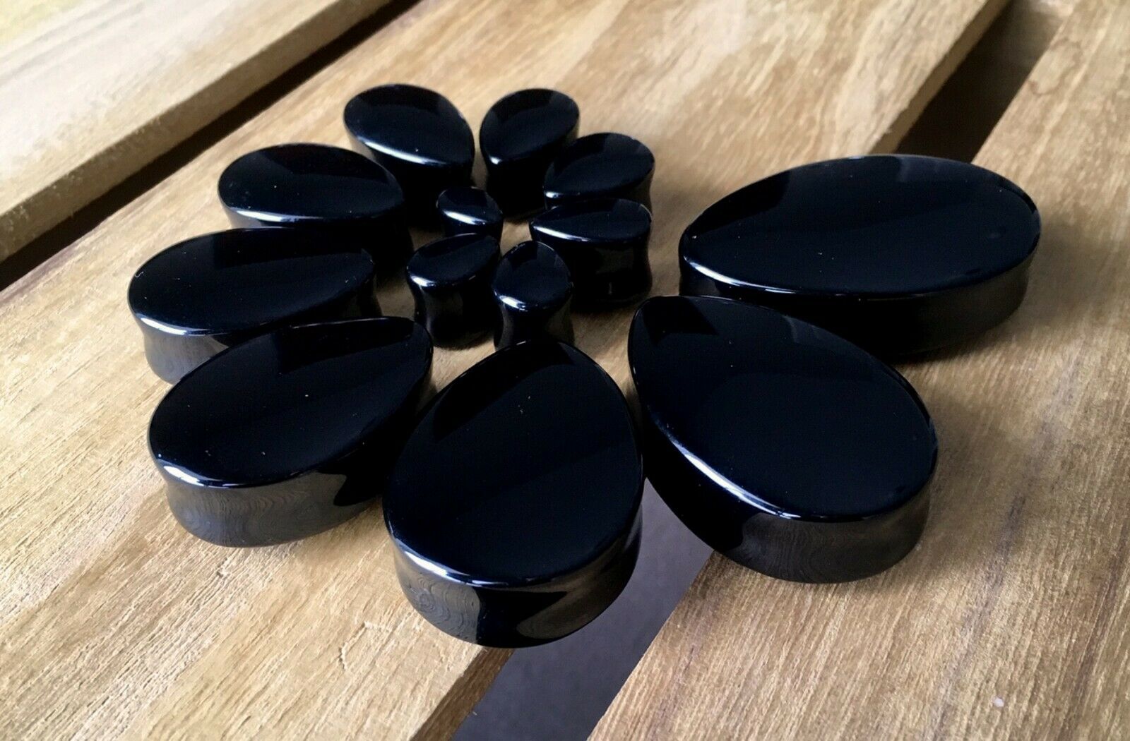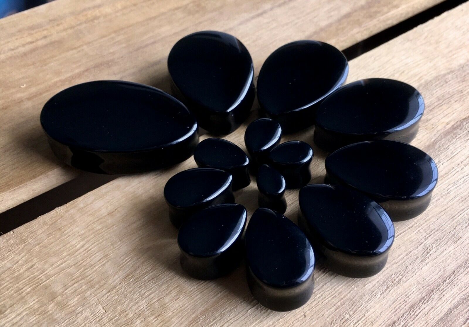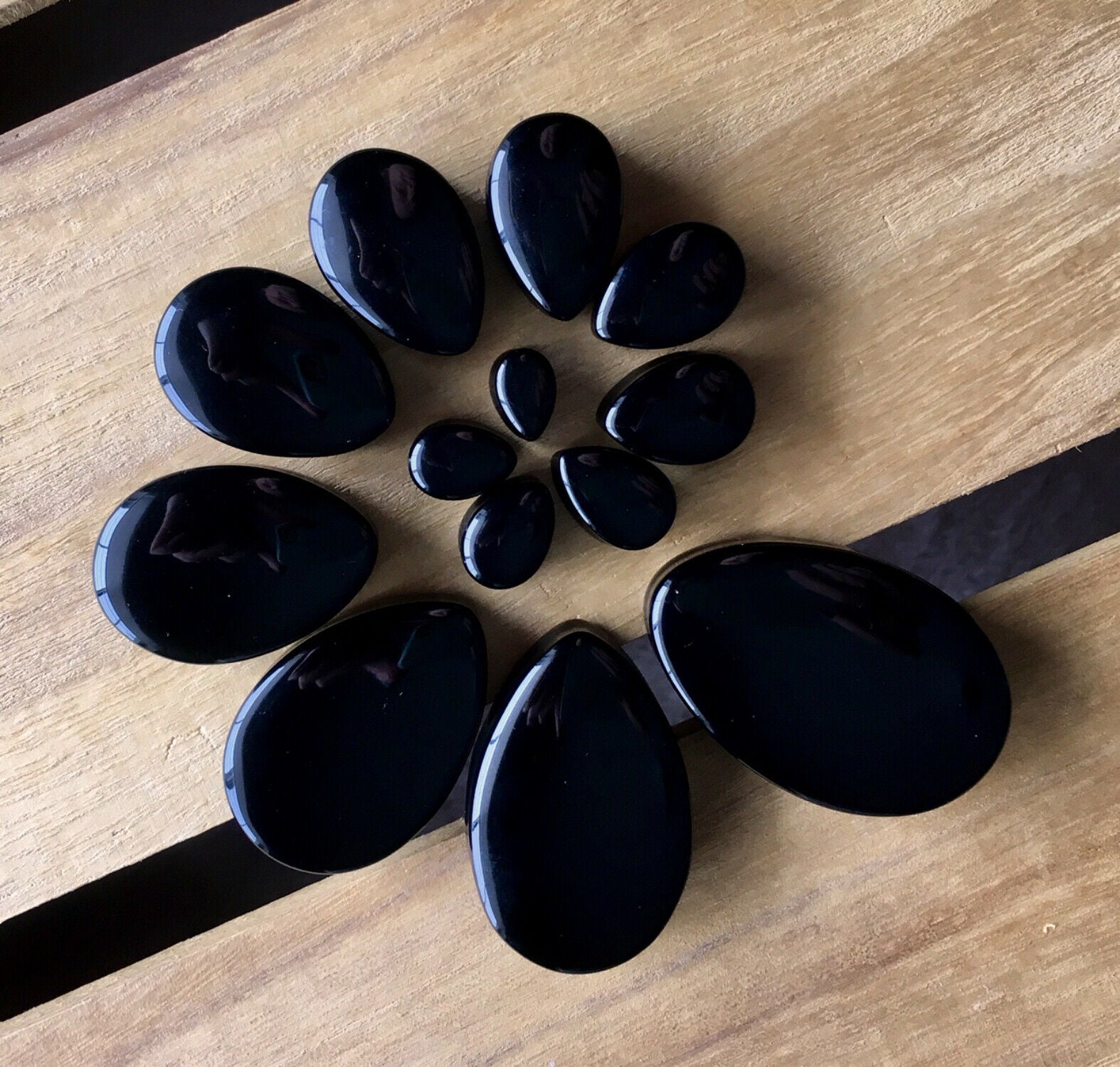 PAIR Teardrop Black Onyx Stone Plugs Tear Drop Ear Piercing Earlets Gauges