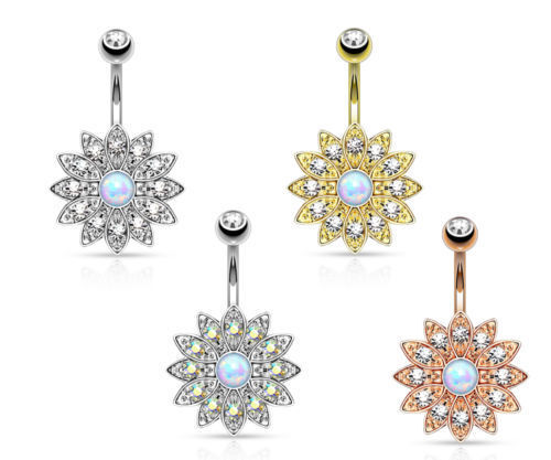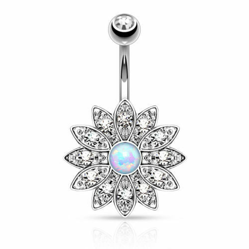 Paved Gems Flower with Center Opal Belly Ring - Choose your color from the above drop down menu