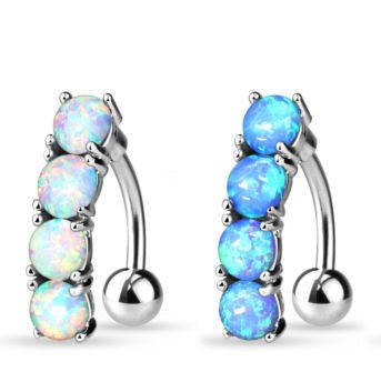 Reverse 4 Opal Stone Belly Ring - Select your color from the drop down menu above