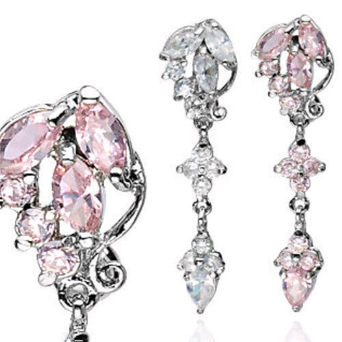 Reverse Cluster CZ Gems Dangle Belly Ring - Select color from drop down menu above