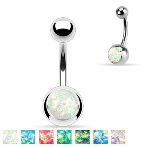 Solitaire Opal Glitter Gem Belly Ring 316L Surgical Steel Navel Naval