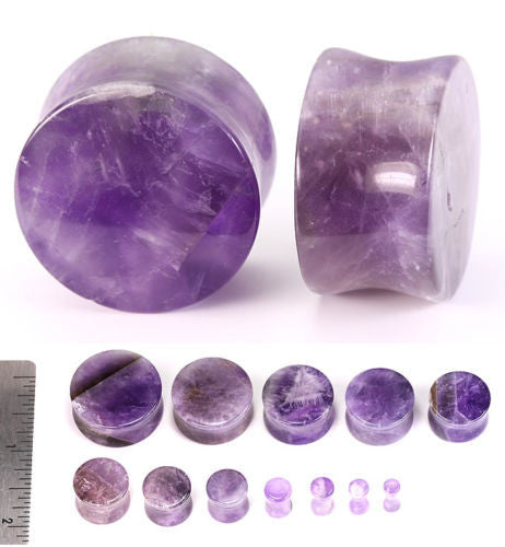 Please note that amethyst is a very inconsistently colored (ranging from very light purple to very dark purple, sometimes gray) and may contain varying degrees (ranging from none at all to very prominent) of streaks and lines. Each pair will be quite unique and may or may not be similar to any of those shown in the photo. If you have a color/style preference please include a note on your order and we will do our best to choose the set in stock most like your description (although we may not have the ability to do so...some of the smallest sizes our entire inventory is only light purple, for example).